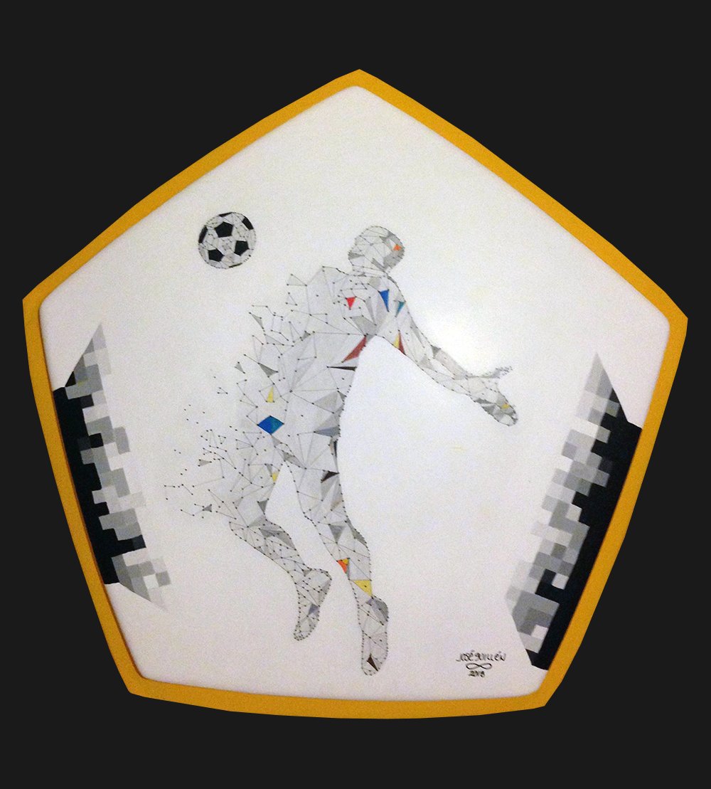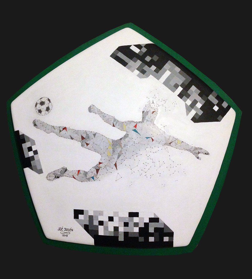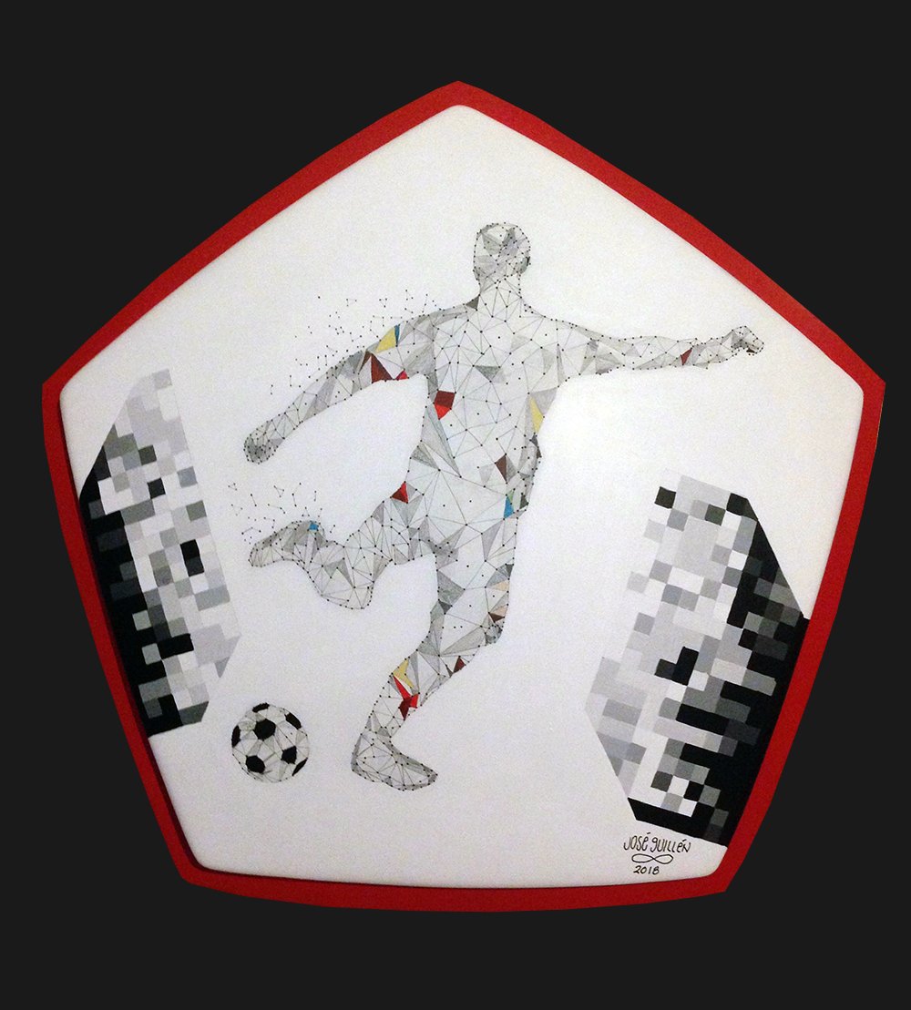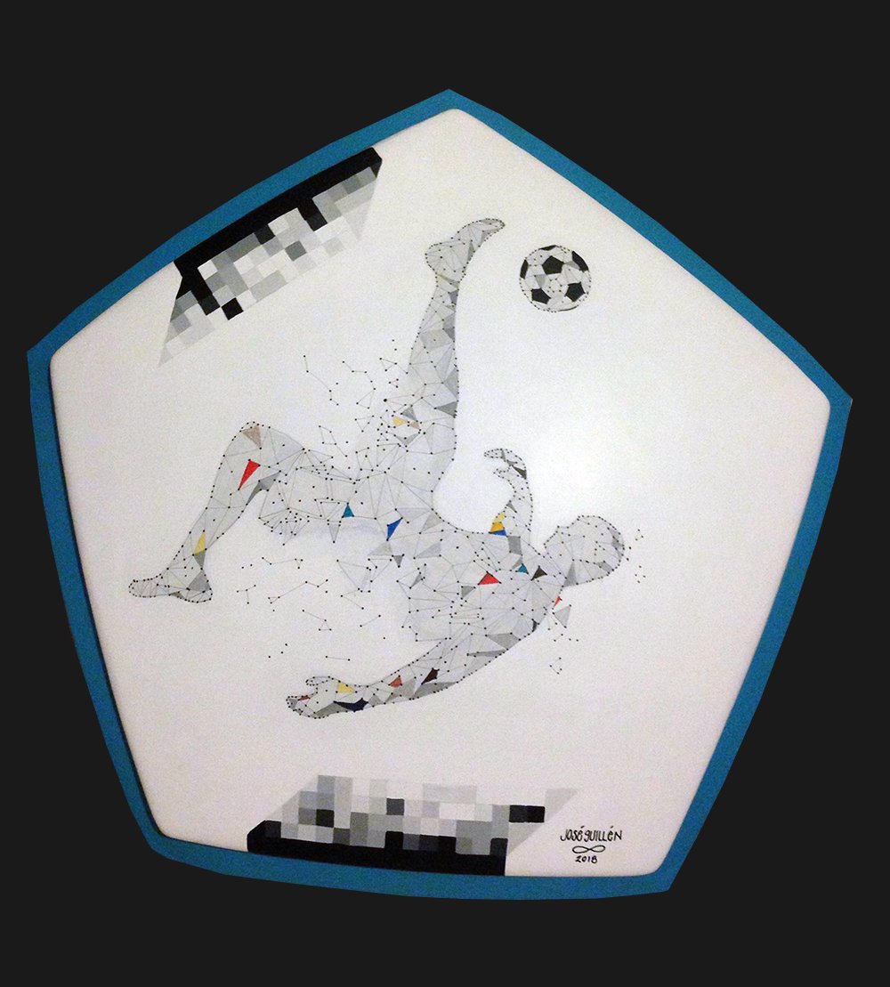 La idea es la fragmentación o desfragmentación de los jugadores sobre sus acciones dentro este deporte, utilice la textura que se usó para el balón oficial durante el mundial.